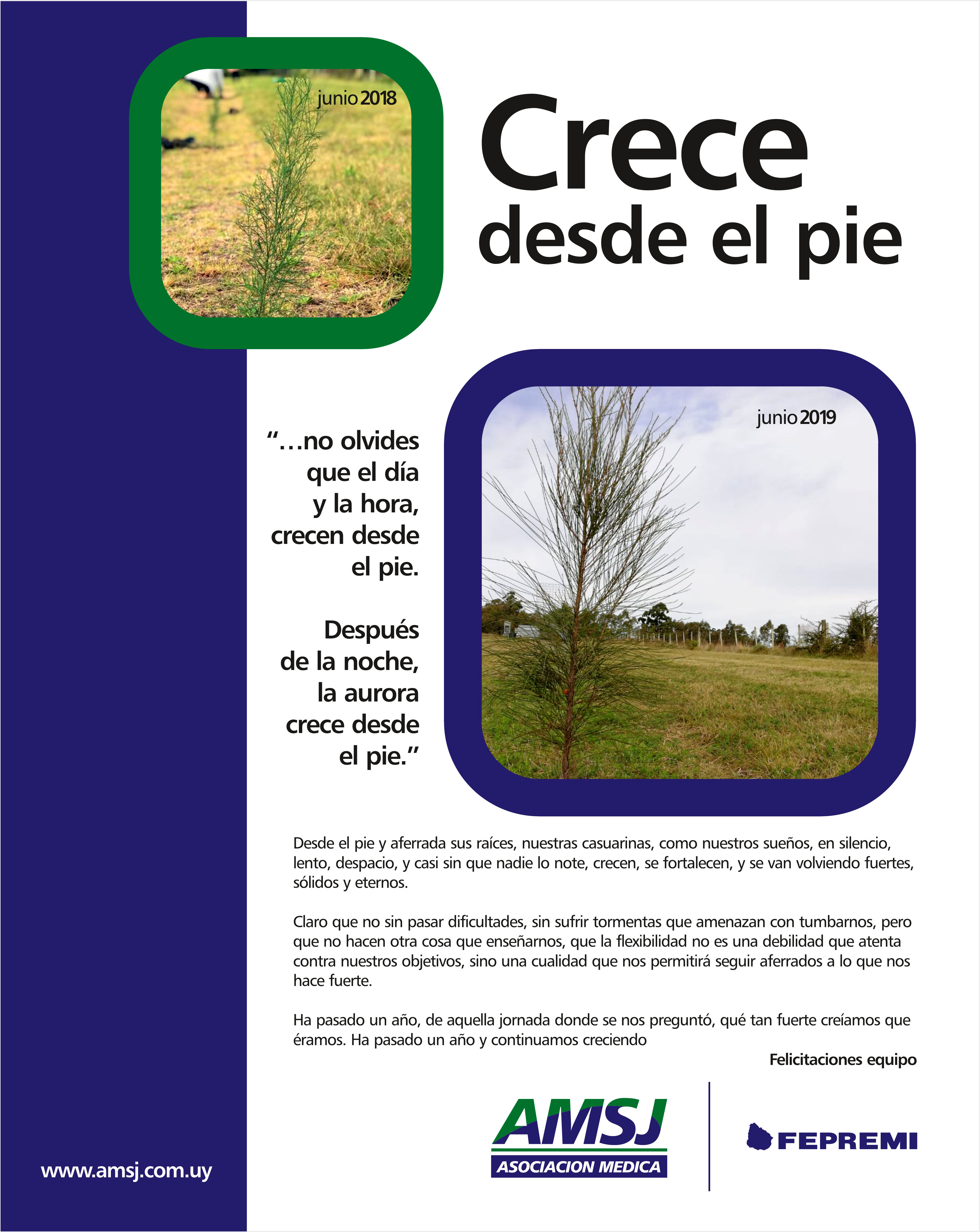 Hoy esas Casuarinas continúan creciendo, en señal que el equipo se hace fuerte como un muro, flexible y arraigado a sus raíces como un árbol y capaz de generar cambios y movimientos como el viento.